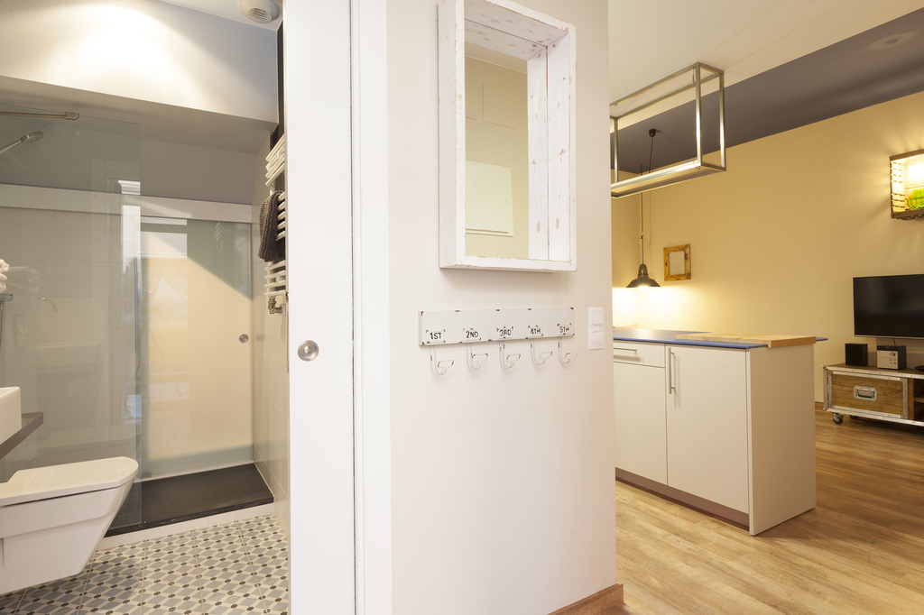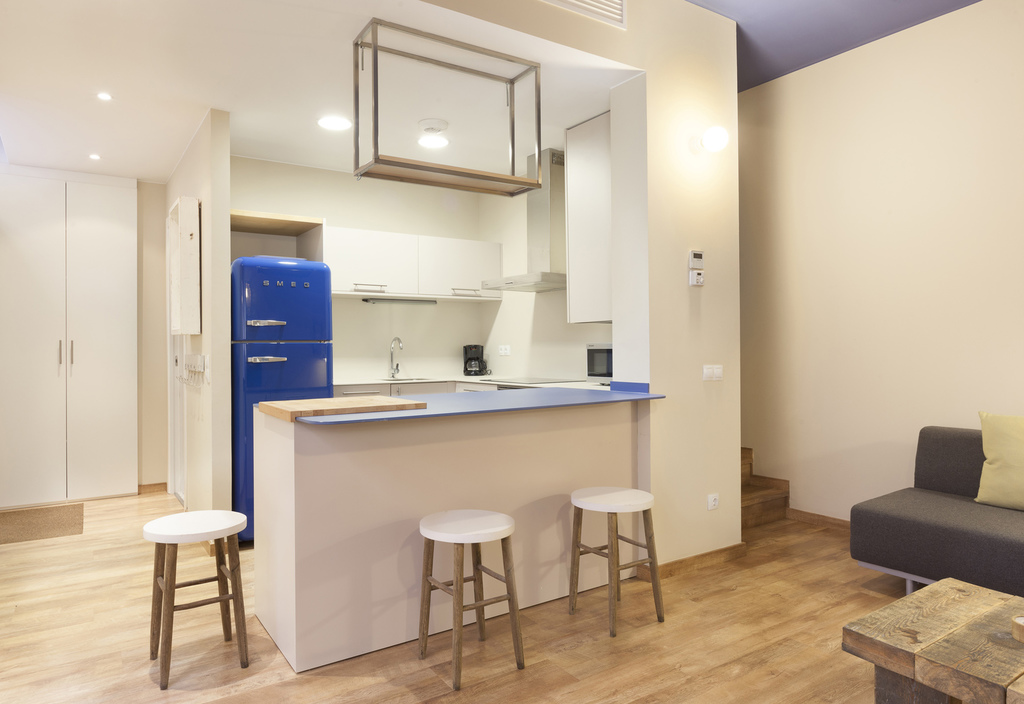 A modern Kitchen, just in the entrance, invites you to have a taste of our local food, you’ll find in the busy market, just around the area. An open space with an young spirit and nicely furnished