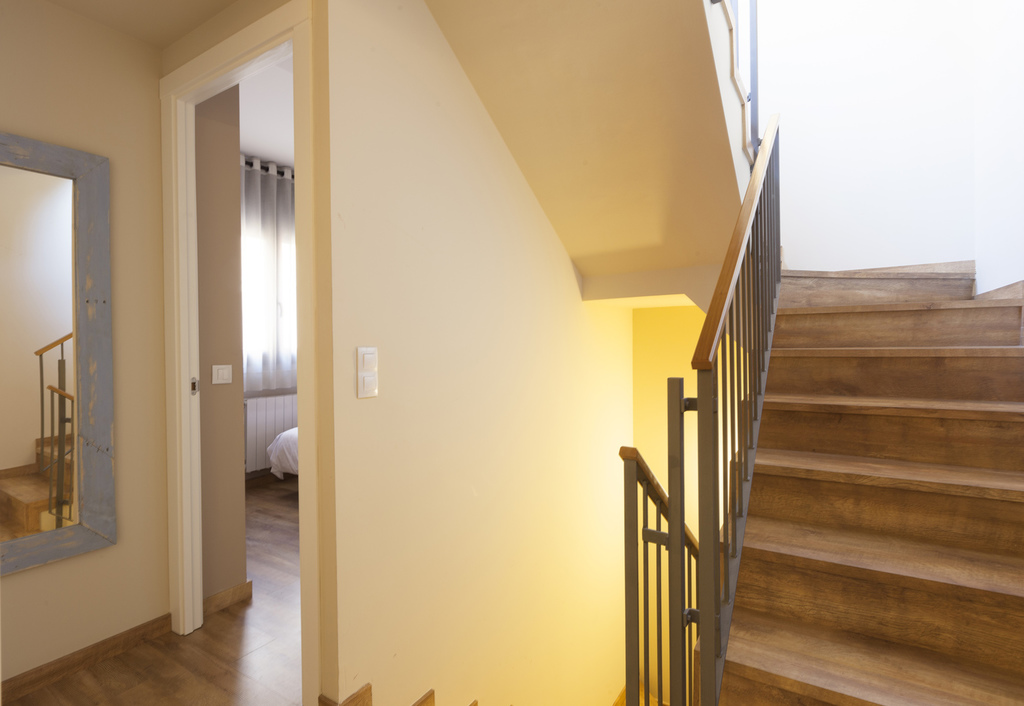 Next to it, you’ll find one cozy and complete bathroom and the living area. upstairs on the next level there are two double bedrooms and one complete bathroom, the perfect space for four guests, all